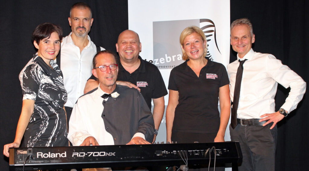 Wie die drei Schauspieler und der Pianist die kniffligen und oft witzigen Vorschläge spontan in eine spannende und zugleich lustige Handlung umsetzten, war grandios. Sie rissen damit die Zuseher immer wieder zu Lachsalven hin, wie es kaum ein Kabarettist schafft. Eine Dame brachte es auf den Punkt: „Das ist besser als jedes einstudierte Kabarettprogramm!“ Dazu der geniale Pianist Andreas Neubauer, der je nach Handlung oder Gesangsdarbietung ständig dazu improvisieren musste – sowohl rhythmisch als auch harmonisch.