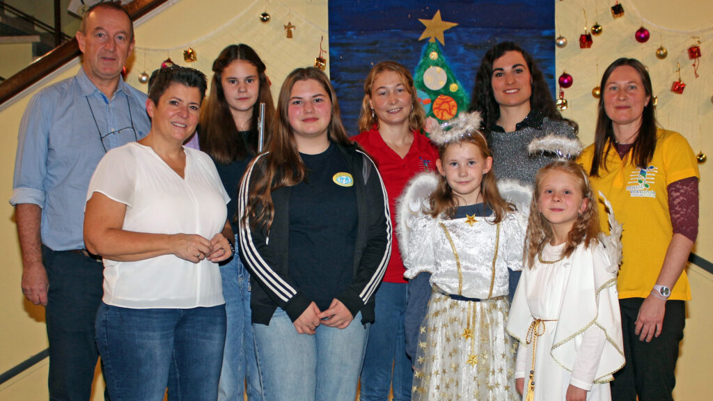 Die Musikmittelschule war vertreten durch das Volksmusikensemble, das adventliche Weisen unter der Leitung von Michael Koch mit gewohnt hoher Qualität spielte. Die Musikstücke wechselten ab mit Liedern der Volksschule, deren großer Chor von Eva Hackl am Klavier begleitet wurde. Unterstützt wurde sie von Christine Rehberger und Romy Mayer, die als Gesangslehrerin die Kooperation der Musikvolksschule mit der Musikschule übernommen hatte.